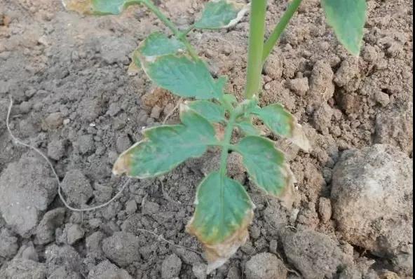 亞硝酸氣即二氧化氮,當地溫較低、土壤通透性差時,過量施用氮肥后,氮肥硝化過程會受阻,亞硝酸態氮在土壤中大量積累,遇上酸性土壤的話,亞硝酸氣體則會大量溢出。亞硝酸害分急性和慢性兩種,主要危害葉片。急性型:葉片上形成很多白色壞死斑點,嚴重的斑點連片或枯焦。慢性型:僅葉尖或葉緣先黃化,后向中間擴展,病部發白后干枯。