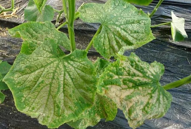 棚室內施用大量生餅肥、有機糞肥后,由于溫度較高,在腐解過程中會產生大量硫化氫,硫化氫在空氣中進一步氧化生成二氧化硫。二氧化硫氣體由氣孔進入葉片,再溶解浸潤到細胞壁的水分中,使葉肉組織失去膨壓而萎蔫,產生水漬斑,最后變成白色,在葉片上出現界限分明的點狀或塊狀壞死斑,嚴重時斑點可連接成片,造成全部葉片枯黃。