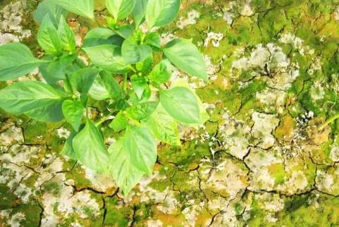 由于施肥量大,土壤中的一些可溶性鹽分會聚集在地表就像上圖一樣。地表鹽分含量高,導致根系生長嚴重受阻,有的地塊甚至無法耕種。危害癥狀主要表現為植株矮化,葉色黑綠有硬化感,心葉卷曲,嫩葉及花萼部位有干尖現象,根變褐色以至枯死,果實生長緩慢,受害嚴重的植株甚至會出現萎蔫、枯萎。