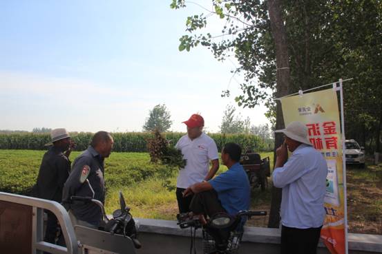 比較戲劇性的是,觀摩會進行中的時候,一位大爺騎著一輛摩托三輪經過,車上滿載著剛剛收獲的花生。看到金沂蒙在召開現場觀摩會,忍不住停下了腳步,并向現場的農民熱情打招呼:這是我家的花生,用的也是金沂蒙復合肥!過來看看咋么樣。大家立馬圍攏過來,只見三輪車上的花生也是粒粒成熟,絲毫不遜色于示范田里的花生。這位大爺得意之情溢于言表,眉飛色舞地向現場農民介紹起了他用金沂蒙復合肥的感受。