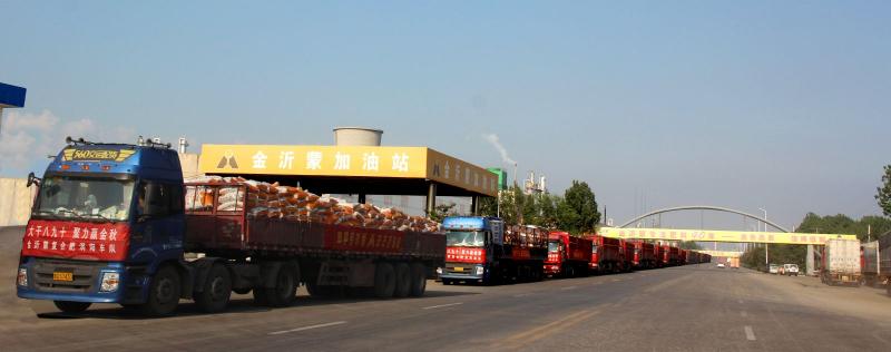 目前活動已經初見成效,公司各條生產線滿負荷運轉,車間工人揮汗如雨,加班生產,產品下線之后,立即裝車發往市場,有效緩解了市場需求壓力。8月11日,僅安徽市場發貨就近千噸,二十余輛安徽亳州、阜陽等線路的運輸車輛陸陸續續抵達金沂蒙,裝貨之后又編隊成列,浩浩蕩蕩開赴安徽市場,成為魯蘇皖道路上的一道亮麗風景線。