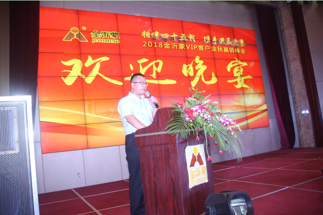 歡迎晚宴上,劉仲濤副總經理致祝酒辭。與會嘉賓都是金沂蒙的忠實客戶,多年來,與金沂蒙攜手同行,不離不棄,對金沂蒙的發展和壯大做出了突出貢獻,對此,劉仲濤表示了衷心地感謝。劉仲濤同時指出,面對新的機遇和挑戰,金沂蒙與時俱進,順勢而為,不斷調整發展方向和策略,不斷綻放新的生機與活力。特別是在廠商合作方面,探索出了一條互利共贏的模式,為經銷商朋友應對市場變化,搶得市場先機做出了有力保障。希望經銷商朋友把握機遇,堅定信心,與金沂蒙共克時艱,共贏未來。