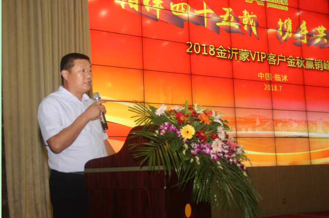 7月19日,2018年金沂蒙北方市場金秋營銷峰會首場在山東臨沭勝利召開,來自甘肅、陜西、山西、冀北等地的300余名金沂蒙VIP客戶歡聚一堂,共商發展,金沂蒙生態肥業銷售副總經理劉仲濤、銷售總監張慶等出席會議。