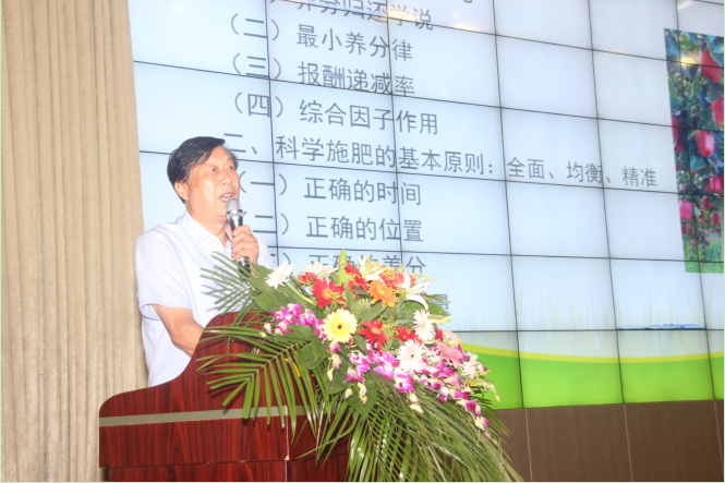 很多參會客戶來自果樹種植區,對于果樹的栽培、管理和施肥用藥等知識有著強烈的需求,為此,金沂蒙特別邀請了國內知名的農技專家王以勝老師,針對參會客戶群體量身定做了《農田土壤健康及改良技術》和《果樹科學施肥技術》兩堂培訓課件,從中國土壤的現狀、土壤改良與安全控制技術、科學施肥的基本理論、科學施肥的基本原則等方面進行了細致講解。同時王老師還針對國內的有機肥產品進行了羅列分析,認為金沂蒙生物有機肥原料優質、工藝先進、效果明顯,是國內最具市場前景的土壤改良型肥料產品,合理施用,將會讓果更香、瓜更甜。