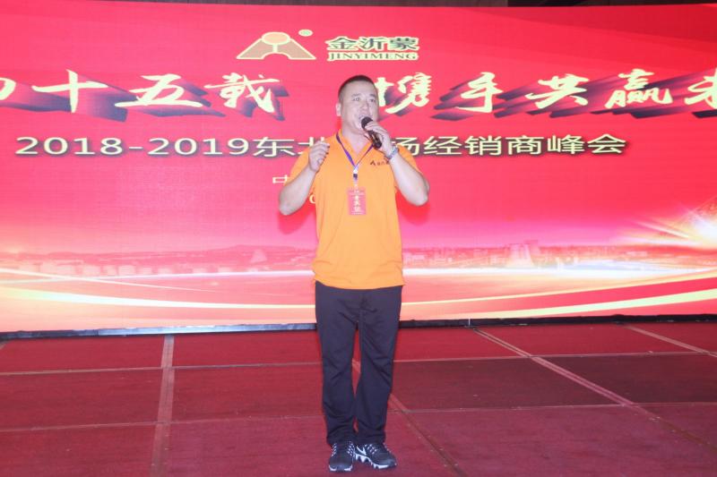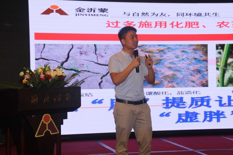 會議伊始,山東金沂蒙生態肥業有限公司銷售副總經理袁峰進行了熱情洋溢的致辭。袁峰對東北市場各位經銷商朋友的到來表示了熱烈的歡迎,他指出,即將過去的2018年,金沂蒙生態肥業迎難而上,開拓奮進,研發生產和市場銷售等各方面均取得了可喜的成績。特別是東北市場,在經銷商朋友的鼎力支持下,品牌知名度和市場占有率不斷提高,為金沂蒙的發展壯大貢獻了力量。袁峰同時闡明了金沂蒙生態肥業下一步的戰略規劃和目標方向,表示未來將繼續以客戶為中心,以市場為導向,持續提升技術水平,不斷提高產品質量,高舉環保生態大旗,優化主導產品架構,在向客戶提供優質產品的同時提供完善周到的技術服務和切實可行的營銷指導,實現與經銷商的互利共贏和同步發展。