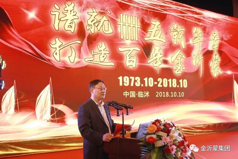金沂蒙集團總經理張思武致歡迎辭,代表集團公司對蒞臨這次慶典的市領導、老領導、老同志,表示熱烈的歡迎和衷心的感謝。感謝多來年各級黨委、政府、部門及社會各界對金沂蒙發展的鼎力支持。感謝為這次撰寫廠志做了大量工作的三位特約編輯和為這次內部廠慶辛苦付出的工作人員。
