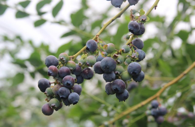 王雷的藍莓種植園一共是12畝,雖然已經經過了多輪采摘,但每棵樹上沉甸甸的藍莓依舊將枝條壓彎了腰。走近一看,一串串藍莓青若翡翠,紅似瑪瑙,藍如寶石,各色果實相間,晶瑩剔透,吹彈可破,讓人垂涎欲滴。隨手摘一顆放到嘴里,酸甜可口,滿嘴生津,讓人忍不住再摘一顆繼續品嘗。