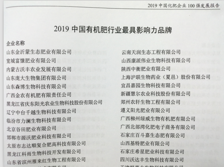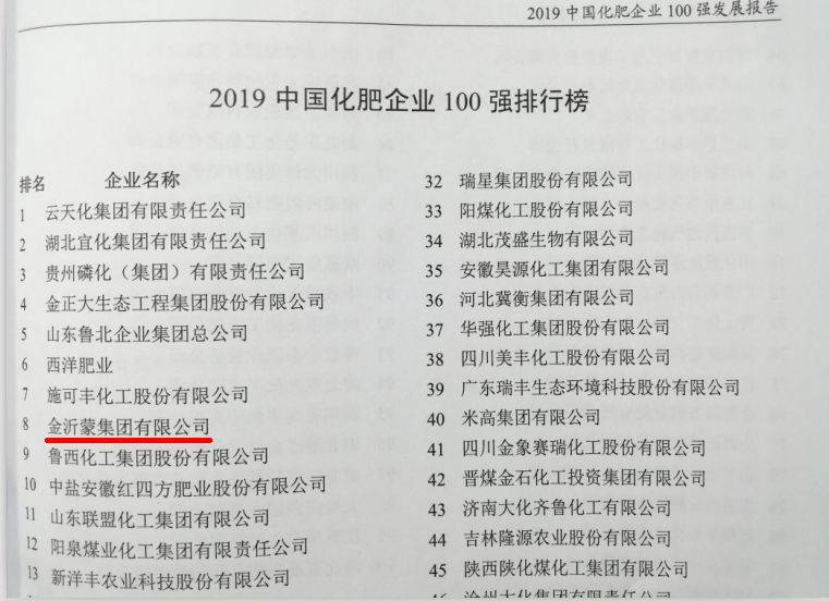2019中國化肥企業100強排行榜發布,金沂蒙榮獲大滿貫!