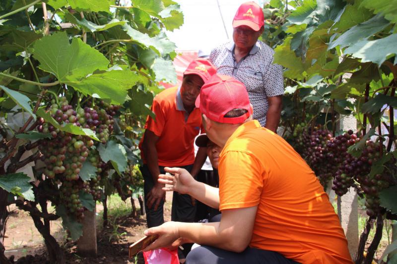 7月28日,郯城縣泉源鎮前寺村孫夫金的葡萄園里熱鬧非凡,十里八鄉的種植戶不顧炎炎烈日聚集一起,品嘗新鮮葡萄,觀摩示范成果,學習種植技術,預定秋季肥料。活動雖小,人氣爆棚,一個字:“燃”!