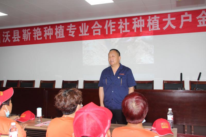 觀光之后的座談會上,金沂蒙生態(tài)肥業(yè)銷售副總袁峰對社員們的到來表示了熱烈歡迎。袁峰表示,有著近五十年發(fā)展史的金沂蒙生態(tài)肥業(yè),是國家高新技術(shù)企業(yè)和國家環(huán)保生態(tài)肥料產(chǎn)品認證企業(yè),致力于有機肥等綠色產(chǎn)品的研發(fā)與生產(chǎn)。希望靳艷種植專業(yè)合作社加強與金沂蒙的合作,讓金沂蒙肥料助力該社實現(xiàn)櫻桃產(chǎn)業(yè)的做大做強。