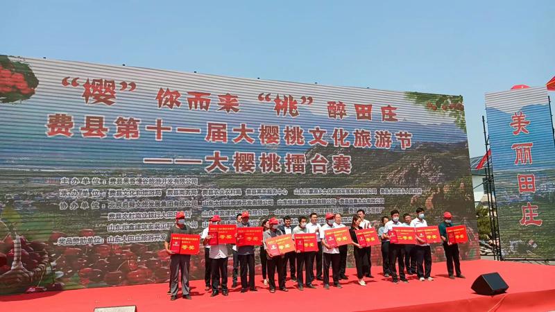 本次大櫻桃旅游文化節開幕式上舉行了大櫻桃擂臺賽,各鄉鎮的大櫻桃種植戶攜自己精心種植的優質大櫻桃參賽,主辦方現場進行了評比,并對優勝者進行了表彰獎勵,獲獎者半數以上為金沂蒙生物有機肥的忠實用戶。