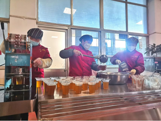 12月16日下午,金沂蒙集團職工餐廳廚房里熱氣騰騰,熬制中藥產生的香氣撲面而來。這邊,廚師不停地攪動鍋里正在熬制的草藥;那邊,工作人員將剛熬制好的藥湯進行打包、分發。前來領取藥湯的職工們高興地說:“這中藥喝到嘴里是苦的,但心里是甜的。集團關愛員工,情系員工,我們干起活來也有勁。”