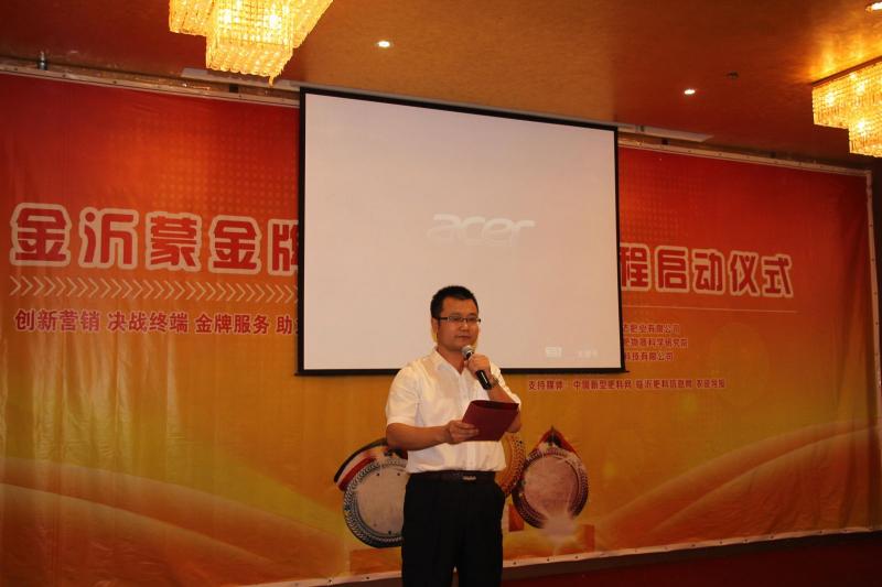 來自淄博高青的總代理王總在啟動儀式上做了典型發(fā)言。王總是金沂蒙的忠誠客戶,從開始合作的每年一百來噸,到現(xiàn)在每年的數(shù)千噸,王總金沂蒙肥料的銷量是年年遞增。談到成功的訣竅,王總認為首先是“女要嫁對郎,男要入對行”,做肥料銷售一定要選擇金沂蒙這樣的大廠家,大品牌,大樹底下好乘涼;其次,一定要做好終端服務(wù),現(xiàn)在肥料銷售的競爭非常激烈,拼價格是兩敗俱傷,拼服務(wù)才會實現(xiàn)雙贏。王總毫無保留地將其在實際營銷中所做的終端服務(wù),特別是創(chuàng)新性的服務(wù)案例與大家進行了分享,希望與會經(jīng)銷商都緊密跟隨金沂蒙前進的步伐,調(diào)整策略,與時俱進,與金沂蒙一起進步,一起發(fā)展。