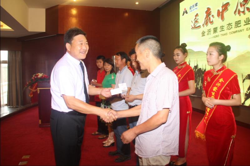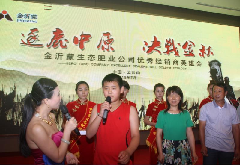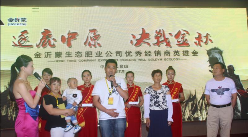 在英雄會(huì)現(xiàn)場(chǎng),優(yōu)秀經(jīng)銷商代表上臺(tái)領(lǐng)獎(jiǎng)。主持人紅貴隨機(jī)對(duì)獲獎(jiǎng)嘉賓進(jìn)行了現(xiàn)場(chǎng)采訪。受訪者或者健談,或者內(nèi)斂,但是不約而同地提到了一個(gè)詞“十幾年”。來自阜寧縣農(nóng)資批發(fā)公司的曾從廣總經(jīng)理談到金沂蒙,就像打開了話匣子般滔滔不絕,十幾年的風(fēng)雨歷程一起走過,與金沂蒙之間已經(jīng)建立了割舍不下的親情,合作的點(diǎn)點(diǎn)滴滴娓娓道來,讓與會(huì)嘉賓感受到了他與金沂蒙的一起成長(zhǎng);同樣與金沂蒙合作十幾年的沭陽縣植保公司的史森林總經(jīng)理則顯得簡(jiǎn)練和干脆,當(dāng)被問及為什么選擇金沂蒙時(shí),他說:“金沂蒙是大品牌,有質(zhì)量保證,且服務(wù)周到,我們信賴金沂蒙,所以選擇金沂蒙!”上臺(tái)領(lǐng)獎(jiǎng)的一位十四五歲小男孩引起了眾人的普遍關(guān)注,他是揚(yáng)州江都區(qū)樊川鎮(zhèn)金沂蒙肥料揚(yáng)泰直銷處許忠國總經(jīng)理的兒子,代替父親上臺(tái)領(lǐng)獎(jiǎng)。許總不僅與金沂蒙合作了十幾年,而且一直是金沂蒙肥料專營(yíng),當(dāng)主持人紅貴問小許他家里經(jīng)營(yíng)金沂蒙肥料之后發(fā)生了怎樣的變化時(shí),靦腆而略顯羞澀的小許說:“最大的變化,是家里錢多了,我成為富二代了!”一句大實(shí)話,讓現(xiàn)場(chǎng)嘉賓送以掌聲和歡笑,十幾年彈指一揮間,一個(gè)蹣跚學(xué)步的孩童已成長(zhǎng)為青蔥的少年。