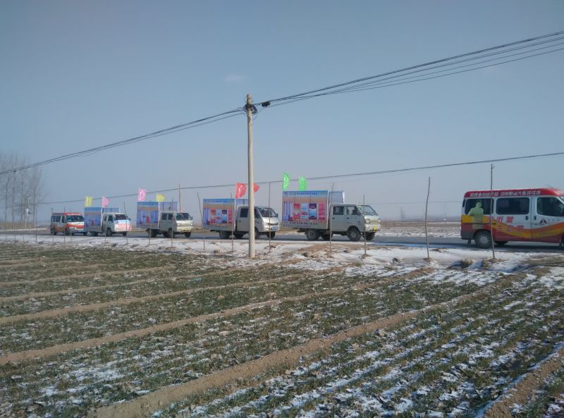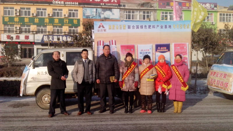為了答謝和回饋廣大用戶,金沂蒙生態肥業銷售總監楊秀東和田豐農民專業合作社史向民總經理經過精心策劃,決定利用現在農閑時節農民都在家的時機,開展免費的送農技知識下鄉活動。為此,楊總帶領金沂蒙的多位農技人員,組織了數輛“農技大篷車”,與金沂蒙的宣傳車一起組成車隊,以花車游行的方式,冒著嚴寒走街串巷,深入田間地頭,向廣大農民進行科學施肥用藥、病蟲害防治、作物種植等農技知識的推廣。許多農民就種植過程中遇到的疑難問題進行了現場咨詢,金沂蒙農技人員耐心細致地一一作答,直到農民滿意為止。