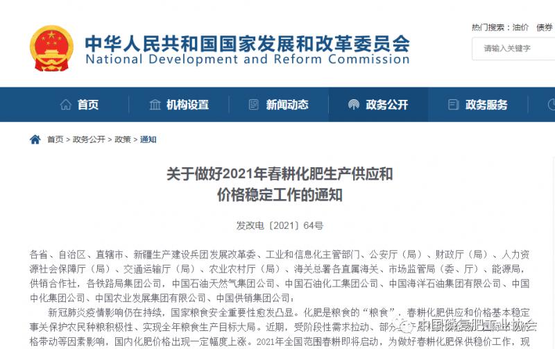 | 國家發改委等12部門發文要求做好2021年春耕化肥保供穩價工作 |