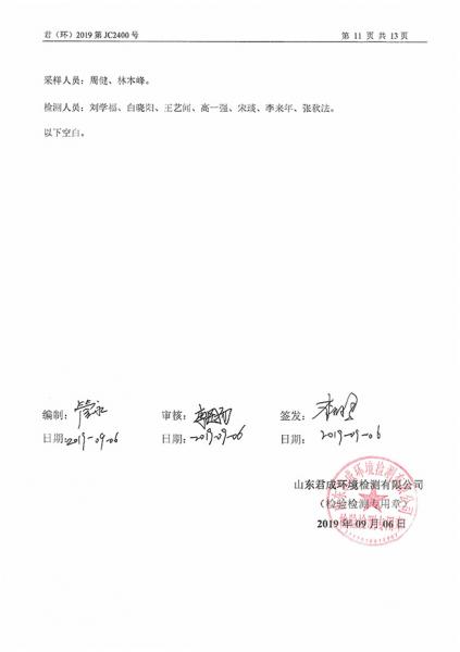 金沂蒙集團(tuán)8月第1次檢測報(bào)告